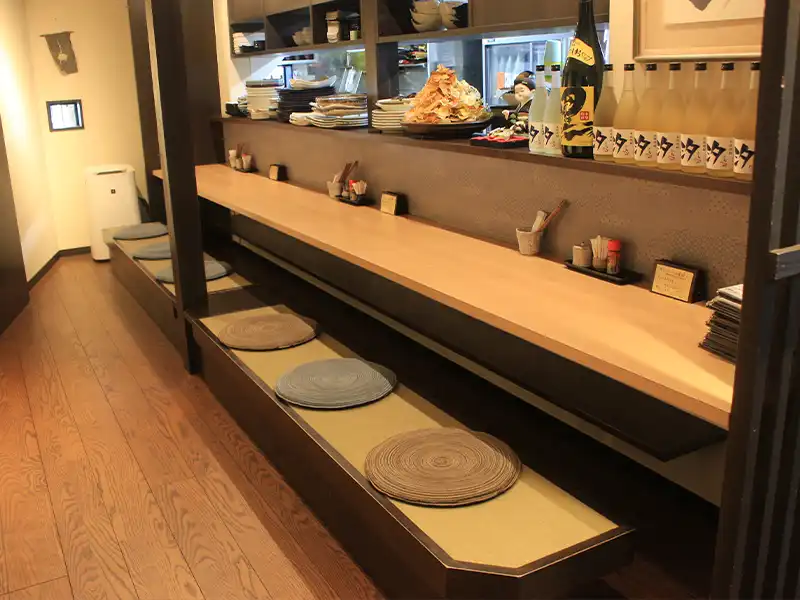 店内には4~6名様のグループ利用に最適な掘りごたつや仲間内での集まりやカジュアルな接待の際は、ぜひコースと合わせてご予約ください。